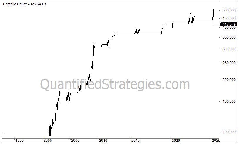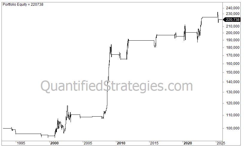 If we combine all 3 short strategies and take max one position at a time, we get the following equity curve: