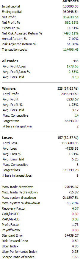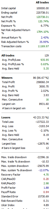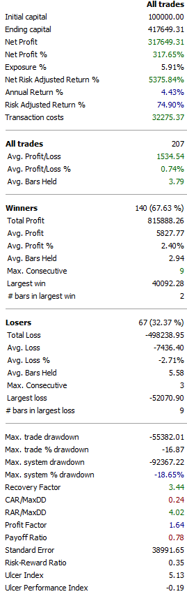 The bundle includes trading rules in plain English and code for Amibroker and TradeStation/EasyLanguage (we also have it in TradingView/Pine Script, but we provide no guarantee that it works properly).