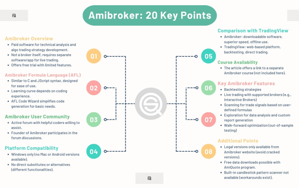 - AmiBroker is a fast, inexpensive, lifetime-licensed platform widely used for algorithmic trading, backtesting, and portfolio-level analysis.