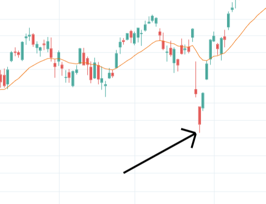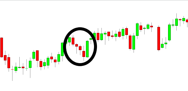 Since a bullish breakaway is considered a bullish reversal pattern, the most common approach is to try to spot the pattern as the market has performed a negative price swing. In the image below we have included an example of such a price swing, albeit without a bullish breakaway pattern.