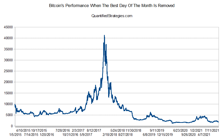 Bitcoin’s performance when the best day of every month is removed