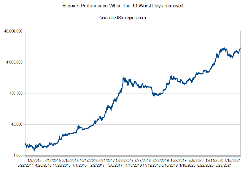 Bitcoin’s performance when the ten worst days in the dataset are removed
