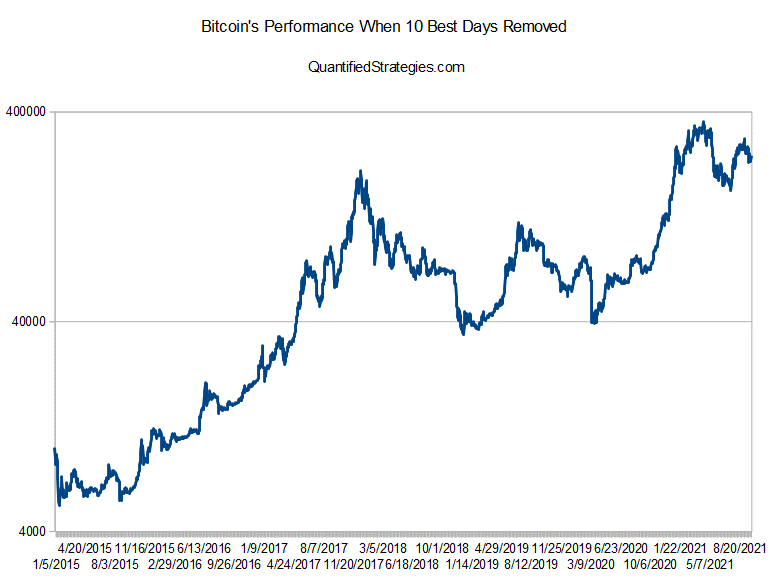 Bitcoin’s performance when the ten best days in the dataset are removed
