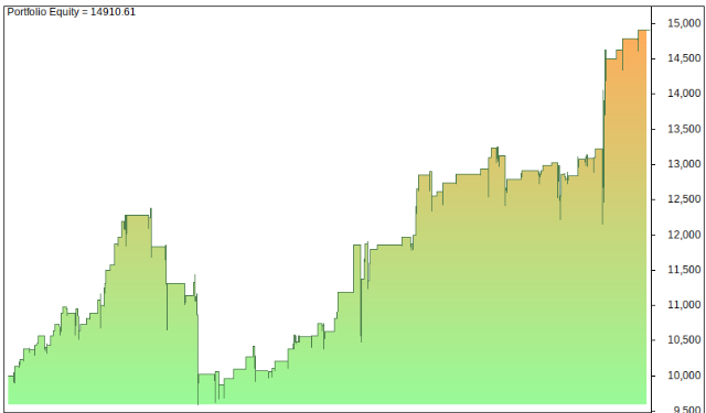 As mentioned further up in the article, we have quantified and backtested the inverted hammer pattern on S&P 500 and we got the following equity curve: