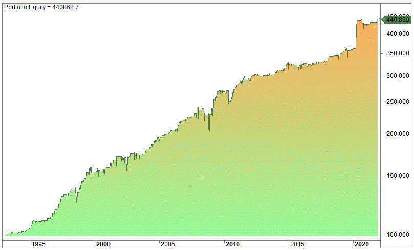 The strategy uses the famous and handy Williams %R indicator but we added another indicator to make the strategy more robust and better. The strategy performs well on most stock indices but yields the best result in Nasdaq.