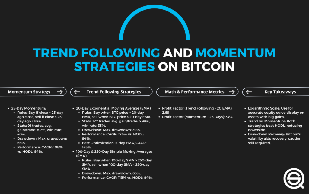 - Trend following strategies work effectively in Bitcoin