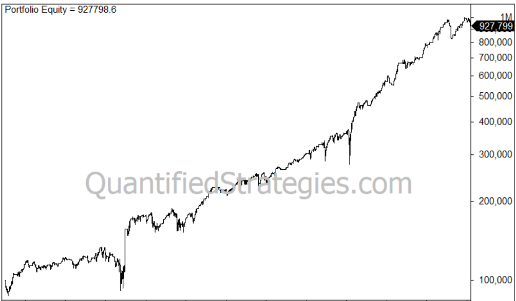 If we backtest this strategy, the equity curve looks like this from 2003:
